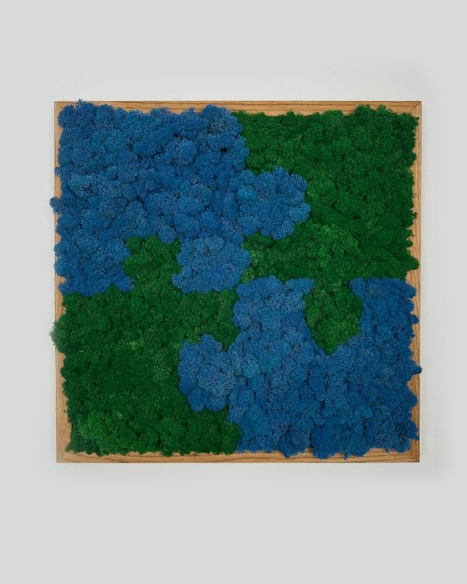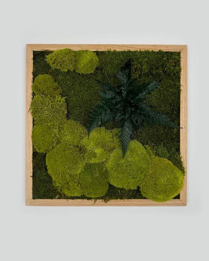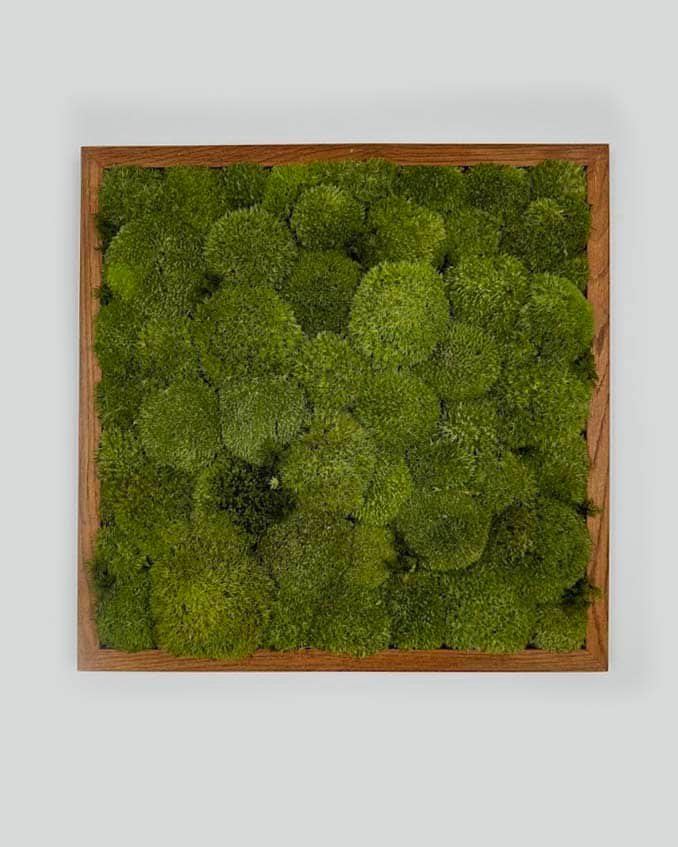 Obraz z mchu i roślin stablizownych w dębowej ramie