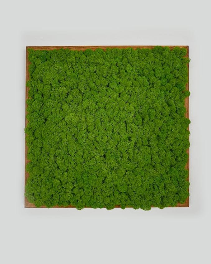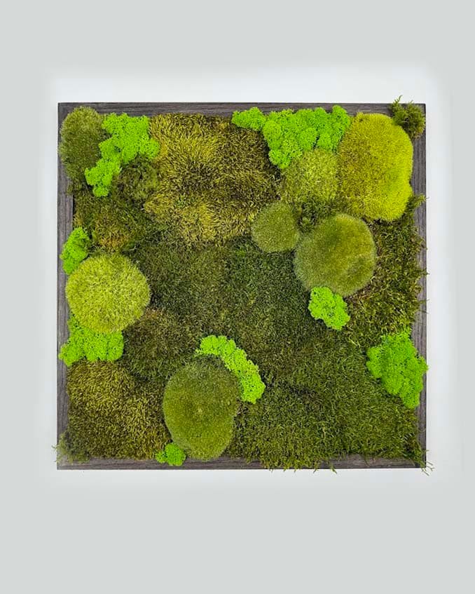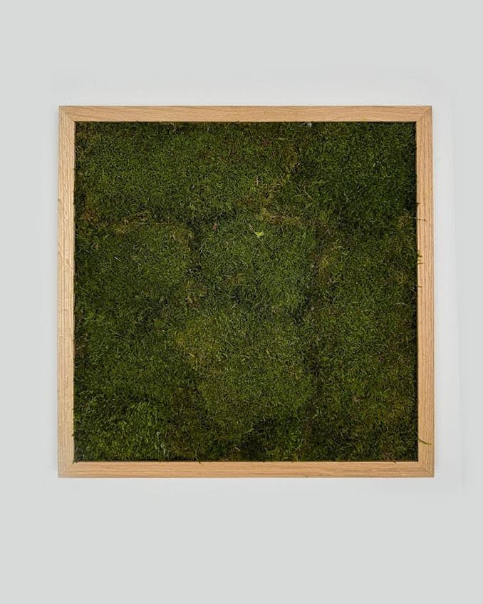 Obraz z naturalnym mchem w stylowej ramie, wykonany ręcznie z najwyższej jakości litego dębu. Bezobsługowy, trwały i gotowy do powieszenia, idealnie sprawdzi się w każdym wnętrzu. Możliwość personalizacji kompozycji, koloru i rozmiaru ramy. Unikalny wygląd zapewniony dzięki naturalnej strukturze mchu. Wystarczy, że dodasz uwagi podczas składania zamówienia a my wykonamy każdą kompozycję która zapragniesz.